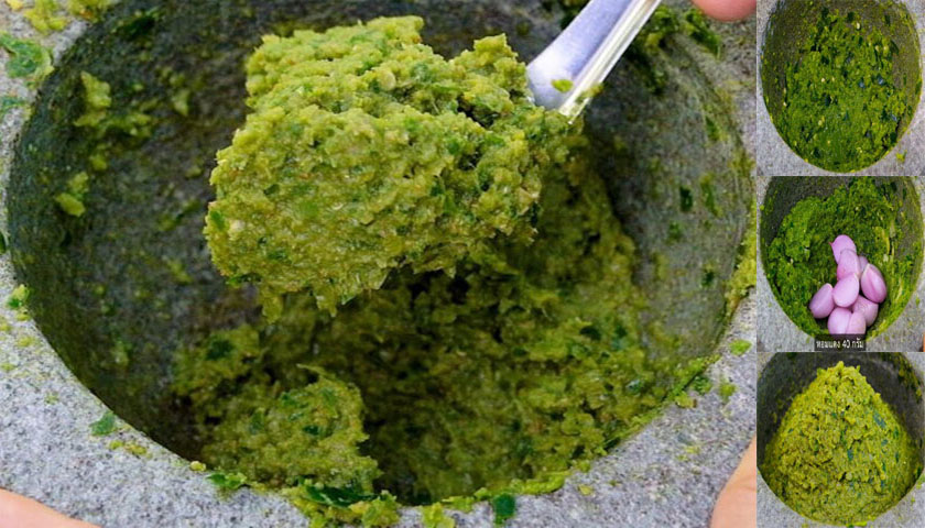 (เดี๋ยวตอนใส่พริกลงไปตำ สีจะออกเขียวและสวยกว่านี้อีก)