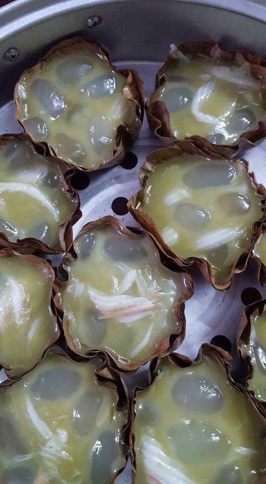 – ใส่เนื้อมะพร้าวอ่อน ลูกชิด(ลูกชิดตองล้างน้ำเอาน้ำเชื่อมออกก่อนจะได้ไม่หวานจัด)