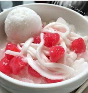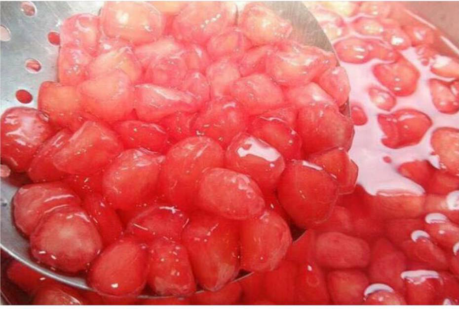 5. นำเมล็ดทับทิม ไปใส่ในถ้วยเสริฟ โรยหน้าด้วยเกล็ดน้ำแข็ง ราดด้วยน้ำเชื่อม,น้ำกะทิ, ขนุนฝอยและข้าวโพด (ถ้าต้องการ) เสริฟทันทีเป็นอาหารว่าง คลายร้อนในวันสบายๆ
