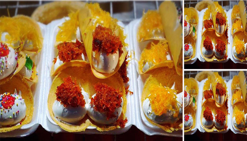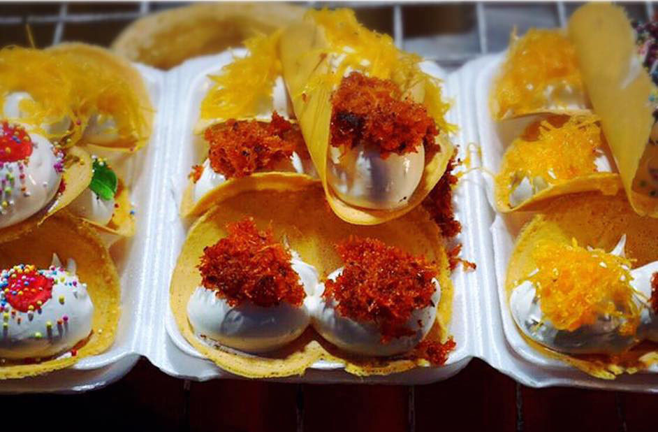 * ไส้หวาน : มะพร้าวขูด, ฝอยทองและงาขาว