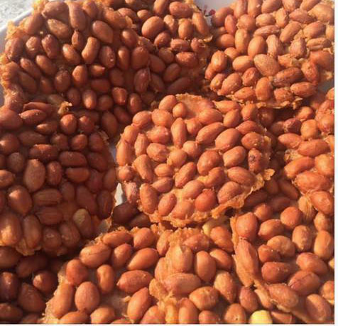 4.เวลาจะทอดค่อยใส่ถั่วลิสงลงในแป้ง แล้วตักใส่พิมพ์ (ไม่ควรใส่แป้งหนาเพราะจะทำให้ไม่กรอบ) นำพิมพ์ลงทอดในน้ำมันที่ร้อน ใช้ไฟกลางค่อนไปทางอ่อน แช่พิมพ์ในน้ำมันประมาณครึ่งนาที แล้วใช้ไม้ปลายแหลมแซะแผ่นถั่วออก ทอดจนแผ่นถั่วเหลืองกรอบทั้งสองด้าน ตักขึ้นพักให้สะเด็ดน้ำมัน พอขนมเย็นตัวลง เก็บใส่ภาชนะมีฝาปิดสนิท เพื่อให้คงความกรอบ