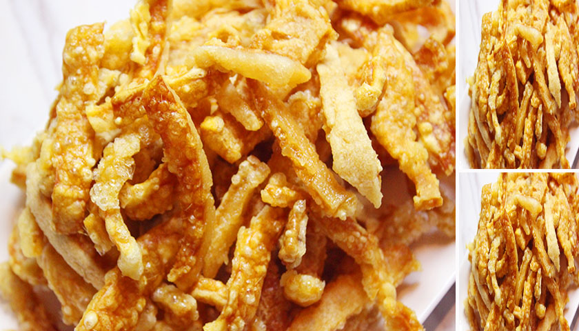 หนังหมู 1 แผ่นใหญ่ (หรือใช้หนังหมูหั่นฝอยสำเร็จรูปก็ได้)