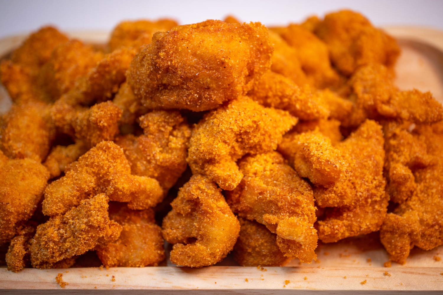 5.เทไก่ที่สะเด็ดน้ำมันลงในภาชนะ ใส่พริกผงปาปริก้าลงไปเขย่าให้คลุกเคล้าเข้ากันดี