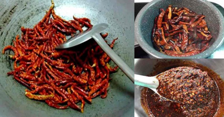 ให้นำพริกขิ้ห นูแห้ง พริกกะเหรียงแห้งนำมาคั่วไฟแล้วนำมาตำหรือนำมาปั่น นำไปผัดในน้ำมันห มู ที่เจียวใหม่ๆใส่กากห มู เป็นชิ้นๆแล้วตักขึ้นจากกระทะเหลือเศษเล็กๆเอาไว้ในกระทะ ผัดไปเรื่อยๆ ก่อนที่เราจะักขึ้นก็ให้ใส่น้ำพริกเ ผ าขวดจะยิ่งเพิ่มรสชาติของความอร่อยมากยิ่งขึ้น ใส่เกลือลงไปเล็กน้อยคนให้เข้ากัน เป็นพริกคั่วน้ำมันที่นำมาปรุงในเมนูก๋วยเตี๋ยว จะยิ่งเพิ่มรสชาติความเผ็ดความหอมของพริกความอร่อยได้มากขึ้น