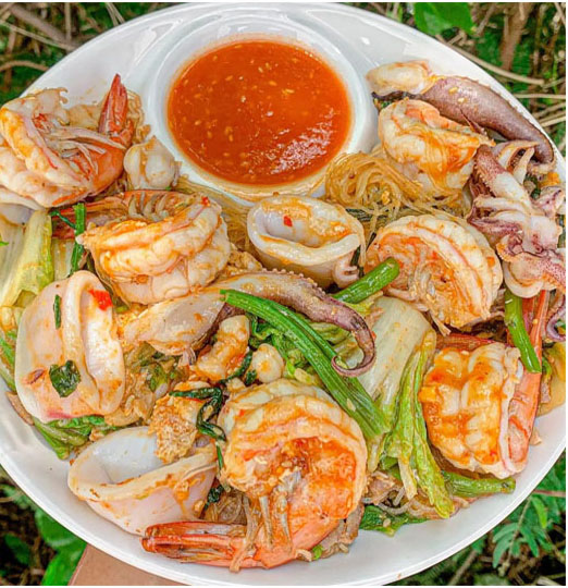 1.ล้างกุ้งและปลาหมึกให้สะอาด พักไว้