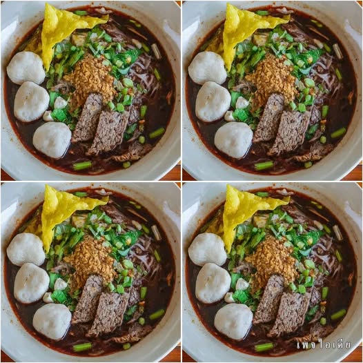 -ก่อนเสิร์ฟ ใส่เลือดหมูสดผสมกับน้ำลงไป คนให้เข้ากัน (ควรใส่เลือดทีละน้อยและคนตลอดเพื่อไม่ให้เลือดจับตัวเป็นก้อน)