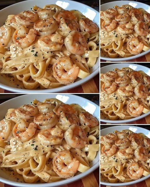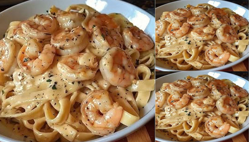 6.เสิร์ฟสปาเก็ตตี้คาโบนาร่ากุ้งร้อน ๆ โรยชีสเพิ่มเติมและพริกไทยดำตามชอบ