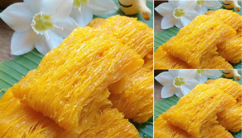 ต้องหยอดไข่ลงในน้ำเชื่อมที่เดือดตลอด ไม่เช่นนั้นเส้นจะไม่สุกดี