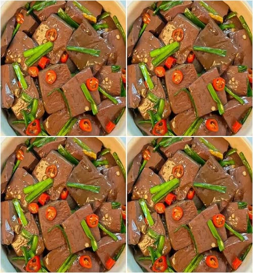 3. **ใส่เ ลื อ ด หมู** – ใส่เลือดหมูลงไปผัดเร็ว ๆ ปรุงรสด้วยซีอิ๊วขาว ซอสหอยนางรม น้ำตาลทราย และน้ำซุปเล็กน้อย