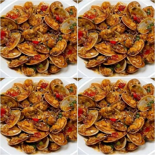 6.ผัดต่อไปจนหอยลายสุกเต็มที่และซอสเข้มข้นประมาณ 5-7 นาทีตักหอยลายผัดพริกเผาใส่จานพร้อมทานจ้า