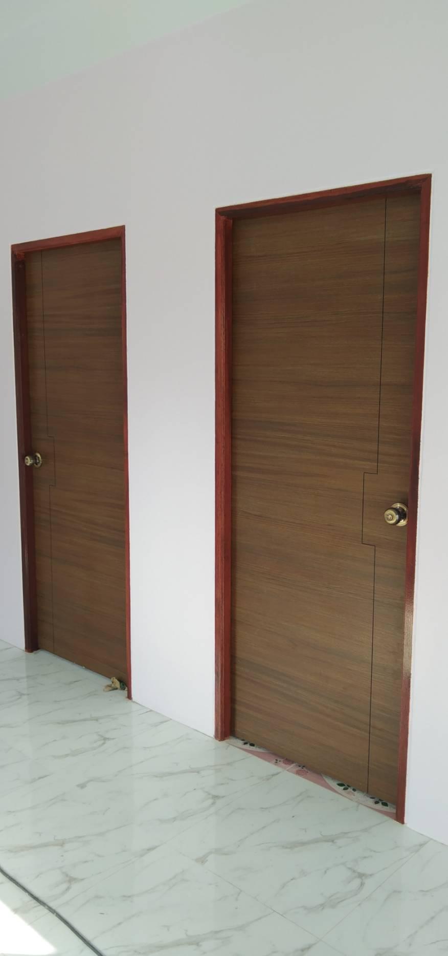 ด้านในบ้านกว้างขวางพื้นบ้านสีขาวลายหินอ่อน ประตูห้องนอนเป็นประตูสำเร็จรูป ลายทันสมัย