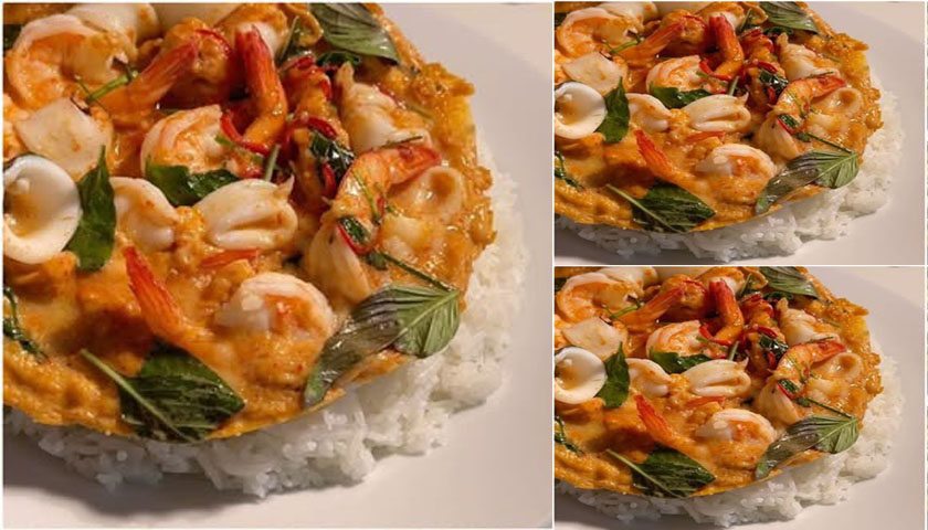 ใส่กุ้ง ปลาหมึก หอย ลงไปคลุกกับน้ำแกง
