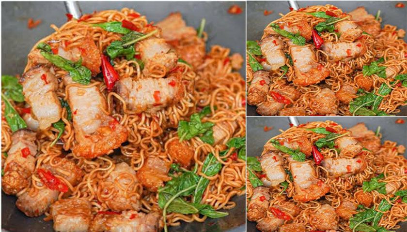 สูตรผัดมาม่าขี้เมาหมูกรอบ จานเด็ดเผ็ดหอมแบบไทย ๆ