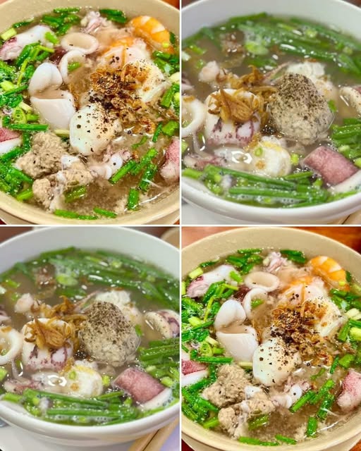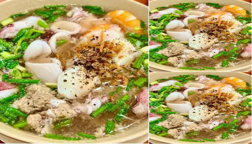 1. ต้มน้ำซุปกับข่าจนเดือด ใส่ปลาหมึกและกุ้งลงต้มจนสุก ปรุงรสด้วยซีอิ๊วขาว และน้ำตาลทราย ต้มจนเดือด