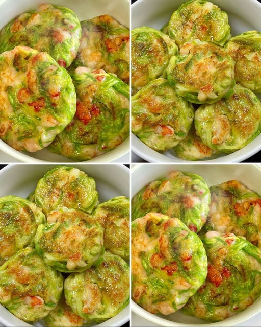 – เมื่อกระทะร้อนแล้ว บีบส่วนผสมลงในกระทะ เป็นชิ้นพอดีคำ