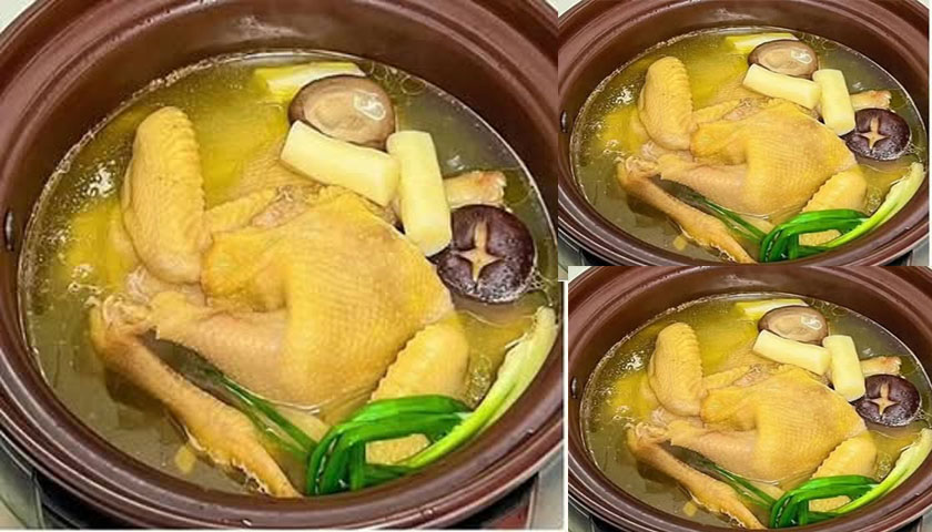 2.น้ำเริ่มร้อนใส่ไก่ลงไป น้ำเดือด>ตักฟองออก. ต้มไปเรื่อยจนกว่าไก่จะนุ่มดี