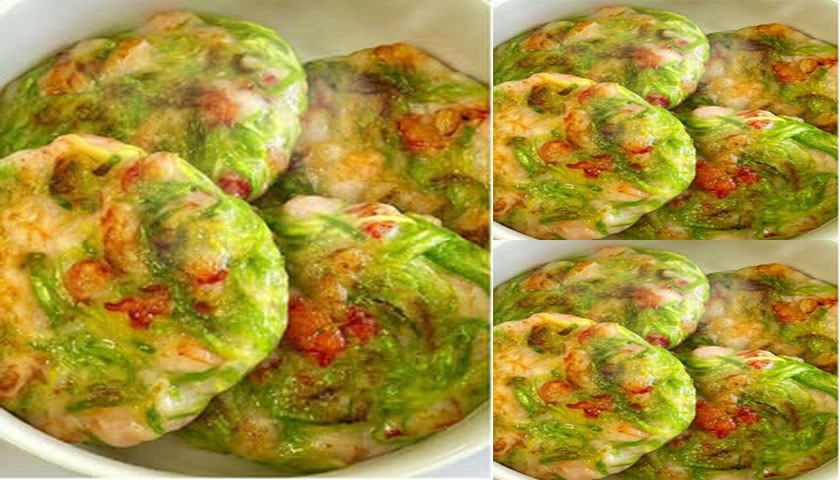 – เมื่อกระทะร้อนแล้ว บีบส่วนผสมลงในกระทะ เป็นชิ้นพอดีคำ