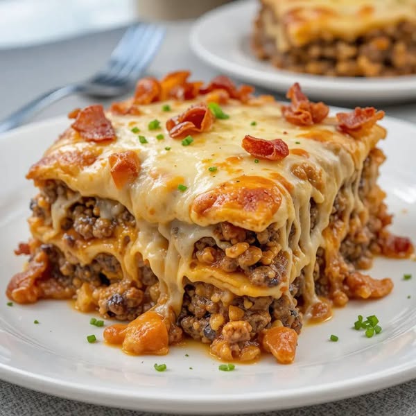 สูตร Parmesan Garlic Bacon Cheeseburger Lasagna แบบง่าย