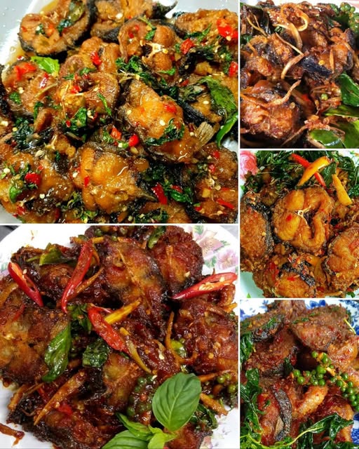 ตั้งกระทะใส่น้ำมัน พริกแกงที่เราโขลกไว้ผัดด้วยไฟอ่อนๆให้เครื่องแกงหอม ใส่น้ำตาลปี๊บเกลือ กระชาย ใบมะกรูด ใบกะเพราผัดให้เข้ากันชิมรสจะออกเผ็ด เค็ม หวานนิดหน่อยน้ำตาลเพิ่มหรือลด ได้ตามชอบ แล้วนำปลาดุกลงมาผัดคลุกให้เข้ากันแบบเบามือ ตักเสิร์ฟจ้าตกแต่ง โรยด้วยใบมะกรูดหรือใบกะเพราทอดกรอบค่ะ