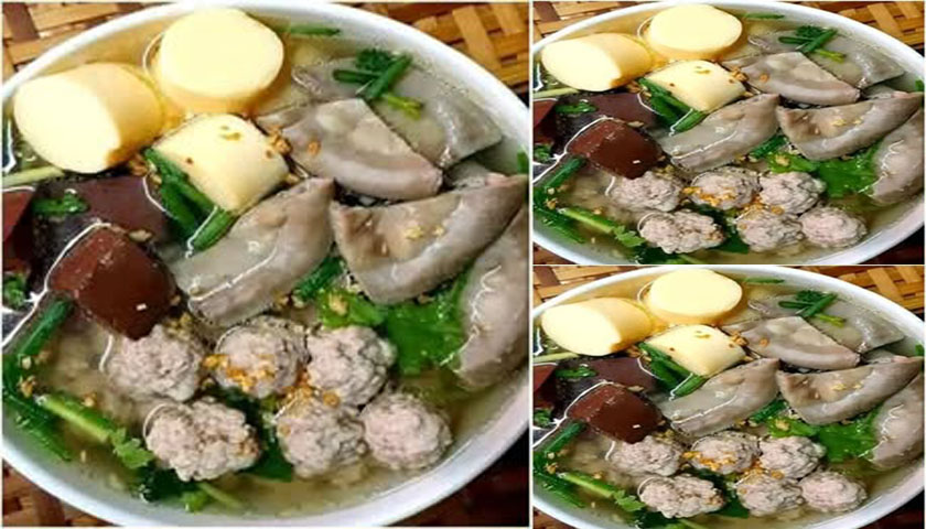 3. ใส่หมูชิ้นลวก ตับลวก เต้าหู้หลอด ปรุงรสน้ำซุปด้วยน้ำปลา ซอสปรุงรส ชิมรสตามใจชอบ