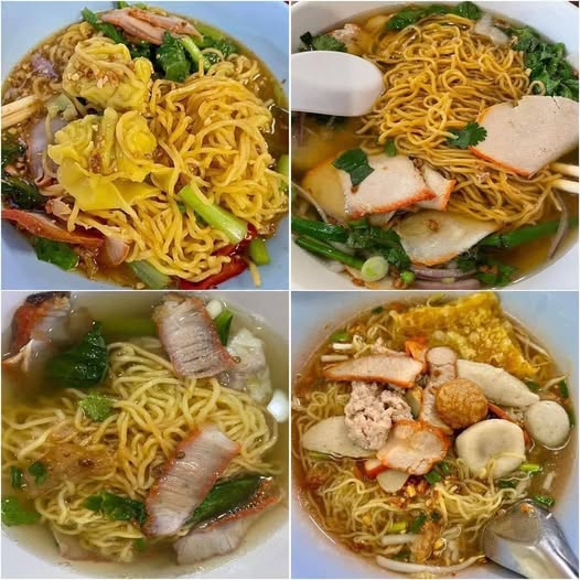 • ลวกบะหมี่ไข่ในน้ำเดือดจนสุก ตักขึ้นสะเด็ดน้ำ แล้วคลุกน้ำมันกระเทียมเจียว
