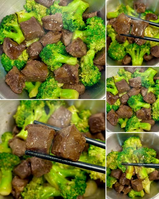 – ใส่เนื้อวัวหั่นเต๋าในชาม เติมซีอิ๊วขาว 1 ช้อนชา + แป้งข้าวโพด 1 ช้อนชา + น้ำมันพืช ½ ช้อนชา คลุกเคล้าให้เข้ากัน พักไว้ 10 นาที