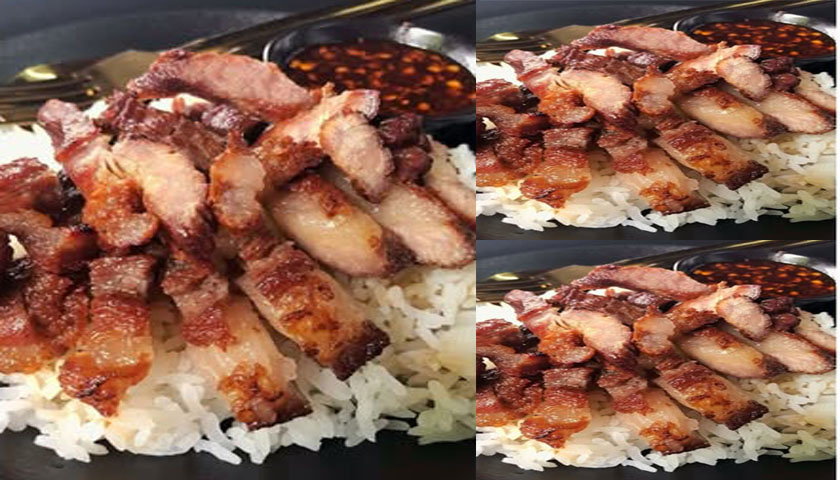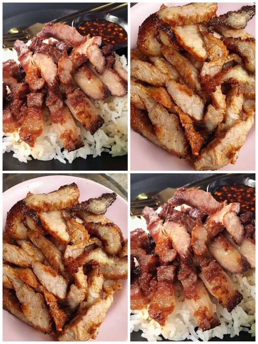 ย่างบนเตาถ่านไฟอ่อน–กลาง หรือหม้ออบลมร้อน / เตาอบก็ได้ พลิกกลับไปมาจนหมูสุกเหลือง หอม ค่อยเร่งไฟให้เกรียมนิด ๆ ด้านนอก พักไว้ 5 นาที แล้วหั่นเป็นชิ้นพอดีคำ