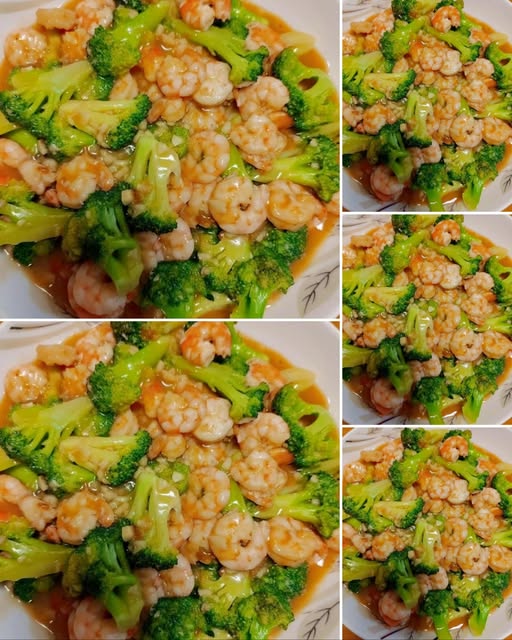 – ตักกุ้งผัดบล็อกโคลี่ใส่จาน เสิร์ฟทันทีพร้อมข้าวสวยร้อน ๆ