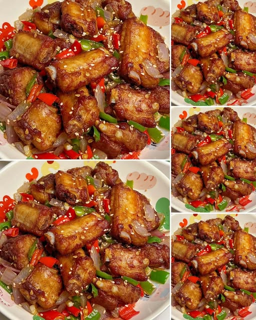 6.รวมทุกอย่าง: นำซี่โครงหมูที่ทอดไว้ลงไปผัดรวมกับเครื่องปรุงจนเข้ากันดี ปิดไฟแล้วโรยต้นหอมซอยลงไป