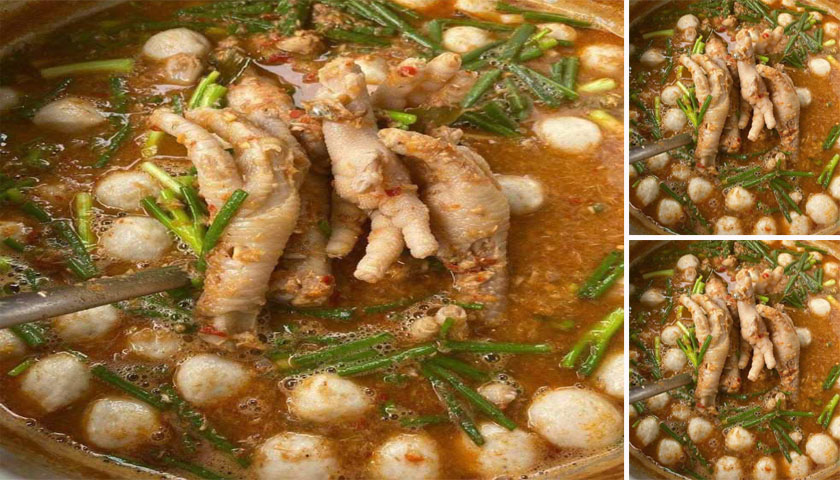 1. อันดับแรกต้มน้ำให้เดือดแล้วนำตีนไก่ลงไปต้มจนตีนไก่นุ่ม