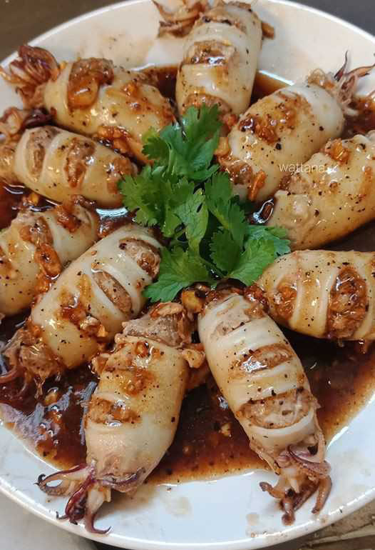 แจกสูตรทำ “ปลาหมึกยัดไส้ซอสกระเทียม” หมึกตัวโตๆไส้แน่นๆคลุกน้ำซอสชุ่มฉ่ำ อร่อยฟินมาก