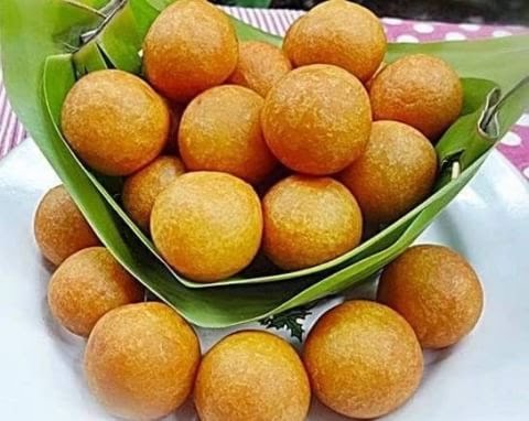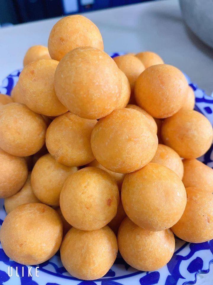 2.ใส่น้ำมันปาล์มลงไปในกะทะเยอะๆๆ เร่งไฟให้น้ำมันร้อนจัด แล้วเบาไฟลงมาเป็นไฟอ่อน เอาแป้งลงไปทอดคนอย่าวางมือ จนแป้งสุกลอยขึ้นมา เร่งไฟเป็นไฟกลาง จนขนมเริ่มสีเหลืองสวยงาม เร่งไปเป็นไฟแรงจัด เพื่อไม่ให้ขนมอมน้ำมัน เหลืองสวยตักออก รับรองอร่อย ฟูไม่แฟ็บแน่นอน จ้า