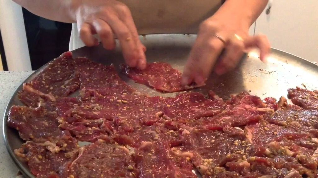1. ล้างเ นื้ อให้สะอาด หั่น เป็นชิ้นบางๆ