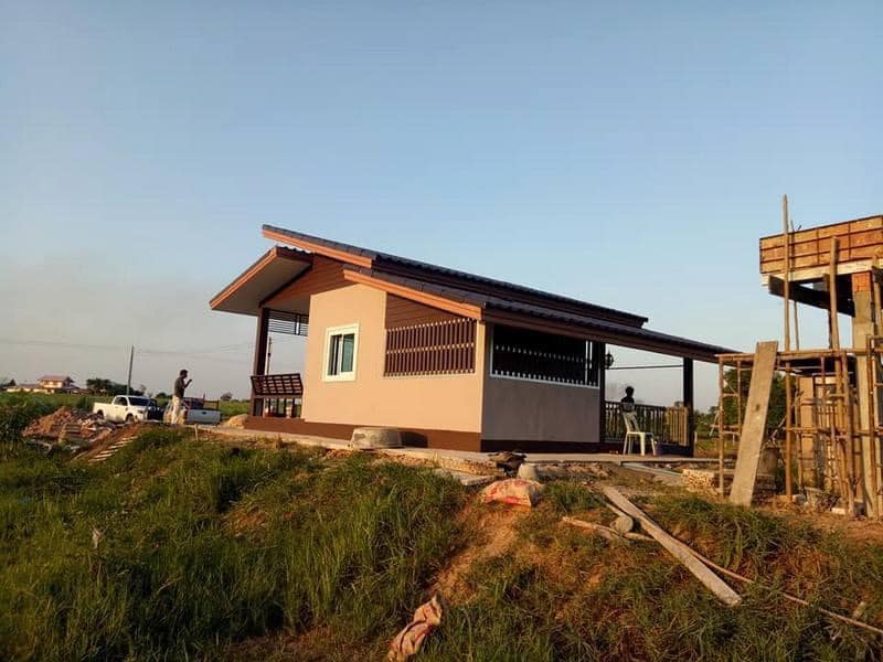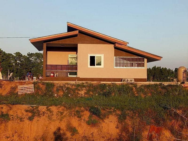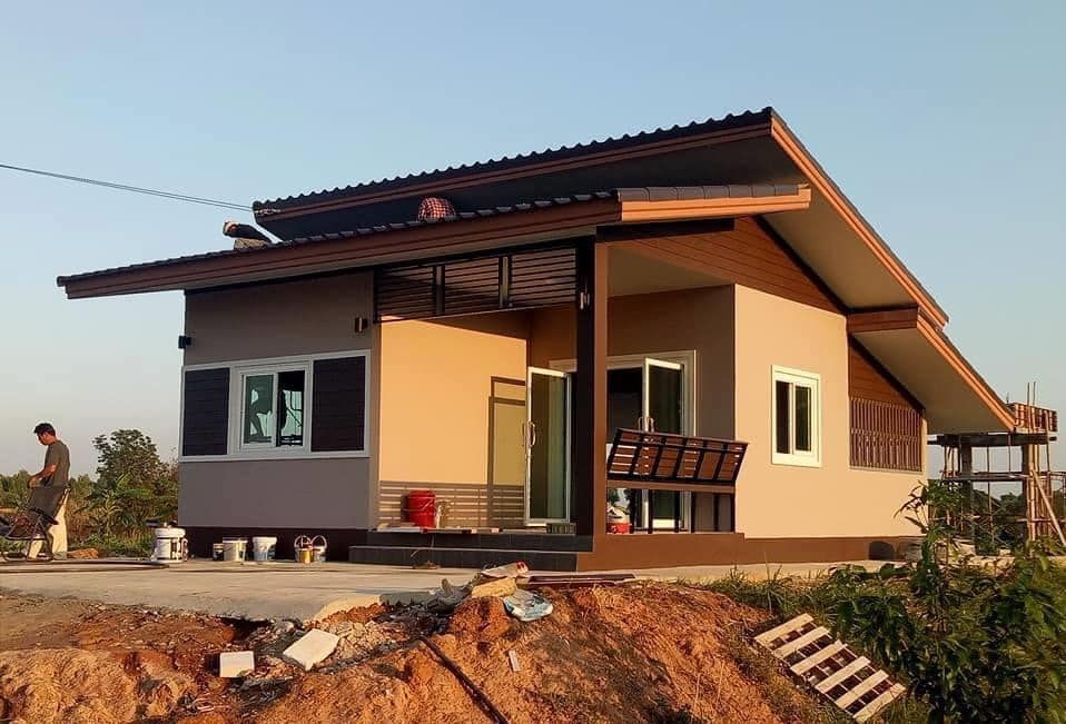 บ้านน่าอยู่ไม่จำเป็นต้องใช้งบมากเสมอไป วันนี้เรามีบ้านสวยๆ ราคาไม่แพงมาเป็นแรงบันดาลใจให้กับคนอยากมีบ้านเช่นเคย บ้านหลังนี้ปลูกสร้างอยู่ที่ จังหวัดชัยภูมิ เป็นบ้านสไตล์โมเดิร์นหลังเล็กกะทัดรัดฟังก์ชันการใช้งานครบครัน เหมาะกับครอบครัวขนาดเล็ก ขนาดพื้นที่ใช้สอยของบ้านหลังนี้อยู่ที่ 54 ตารางเมตร ประกอบด้วย 1 ห้องนอน 1 ห้องน้ำ ห้องโถงขนาดพอเหมาะ และห้องครัวด้านหลังขนาดกว้างขวาง ขอบอกงบประมาณเลยว่า บ้านหลังนี้เจ้าของบ้านใช้ค่าใช้จ่ายเพียง 350,000 บาทเท่านั้น