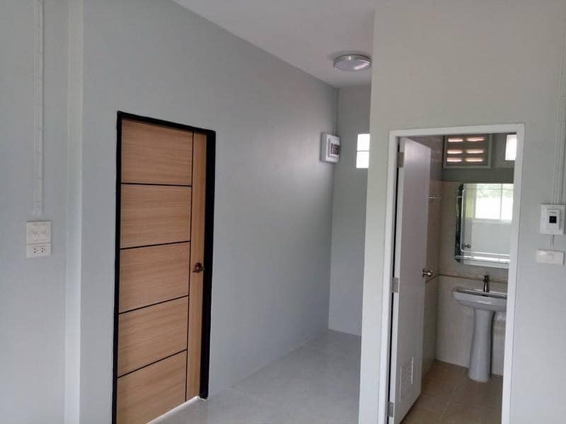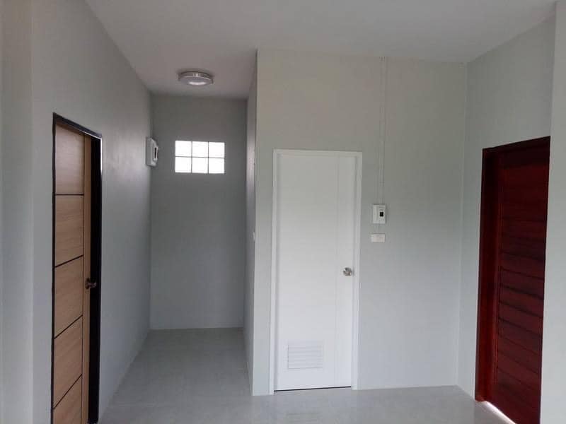 ห้องโถงขนาดพอเหมาะ ประตูสีขาวเป็นส่วนของห้องน้ำ ประตูไม้สีน้ำตาลอ่อนเป็นห้องนอนและประตูสีน้ำตาลเข้มคือส่วนของห้องครัว ซึ่งถือว่าเป็นการจัดวางแปลนที่ลงตัว