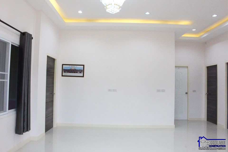 เมื่อเข้ามาด้านในคุณจะพบกับความโปร่งโล่งกว้างขวาง ด้วยการให้ห้องโทนสีขาวทั้งหมด ฝ้าเพดานเป็นฝ้าหลุมซ่อนไว้สีเหลืองนวลด้านในเพิ่มความอบอุ่น และโคมไฟทรงสวยยังเพิ่มความหรูหราได้เป็นอย่างดี ผ้าโทนโทนสีเทาเข้มก็เข้ากันกับสีขาวของบ้านได้อย่างลงตัว
