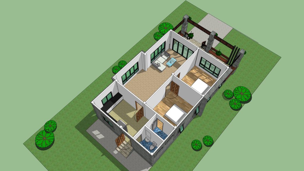 มุมมอง 3D ด้านข้างและด้านหลังบ้าน นับว่าเป็นแบบบ้านที่ลงตัว เรียบหรูน่าอยู่มาก