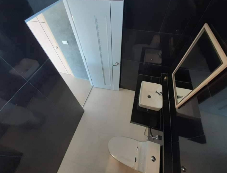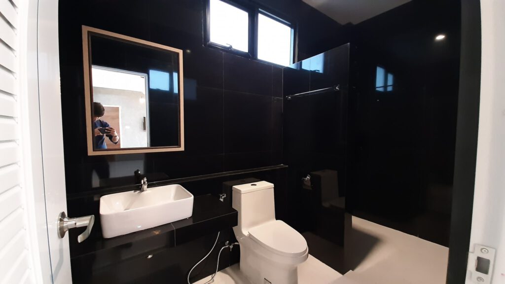 ห้องน้ำขนาดกะทัดรัดโทนสีขาวดำ ใครที่ชอบบ้านสไตล์โมเดิร์นลอฟท์ที่เน้นพื้นที่พักผ่อนด้านนอก หรือบ้านสำหรับเป็นบ้านพักตากอากาศก็เหมาะสม ดูเป็นแนวทางได้ค่ะ