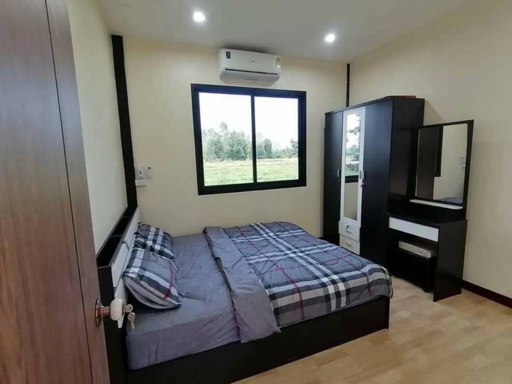 บ้านหลังนี้มีห้องนอน 2 ห้องขนาดพอเหมาะ ที่ออกแบบเรียบง่าย เหมาะกับการพักผ่อน