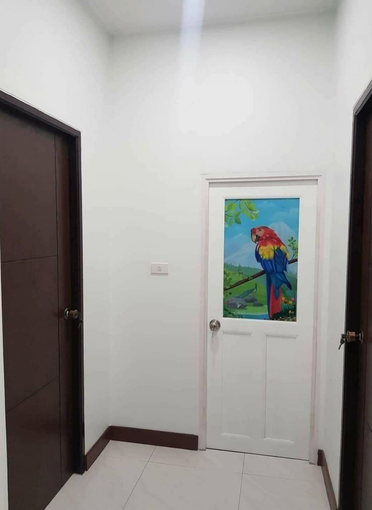 ห้องนอนบ้านหลังนี้มี 3 ห้อง ออกแบบเรียบง่ายด้วยโทนสีสะอาด เหมาะกับการพักผ่อน