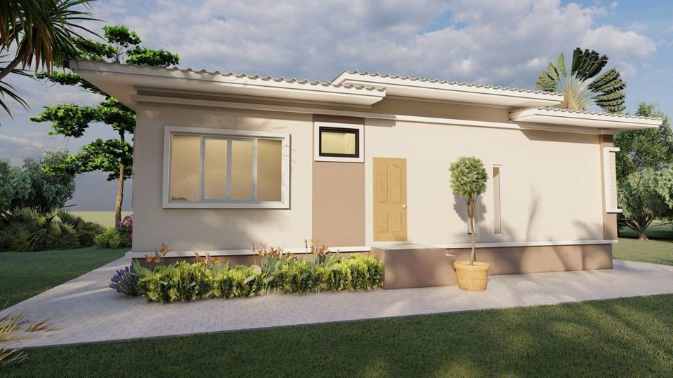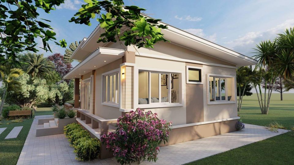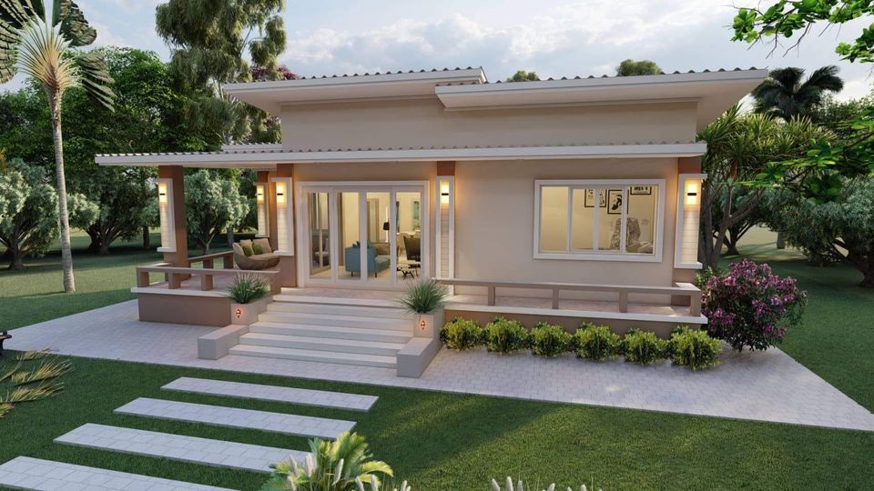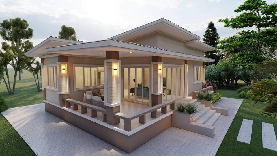 แบบบ้านสวยๆ สำหรับการเป็นแนวทางในการสร้างบ้านสำหรับผู้ที่ชอบบ้านสไตล์ทันสมัยโทนสีสวยละมุน บ้านหลังนี้เป็นการออกแบบจาก “แบบบ้าน มีโชค” เป็นบ้านขนาด 2 ห้องนอน 1 ห้องน้ำ พร้อมด้วยห้องโถงและห้องครัว ระเบียงด้านหน้า กว้างขวาง