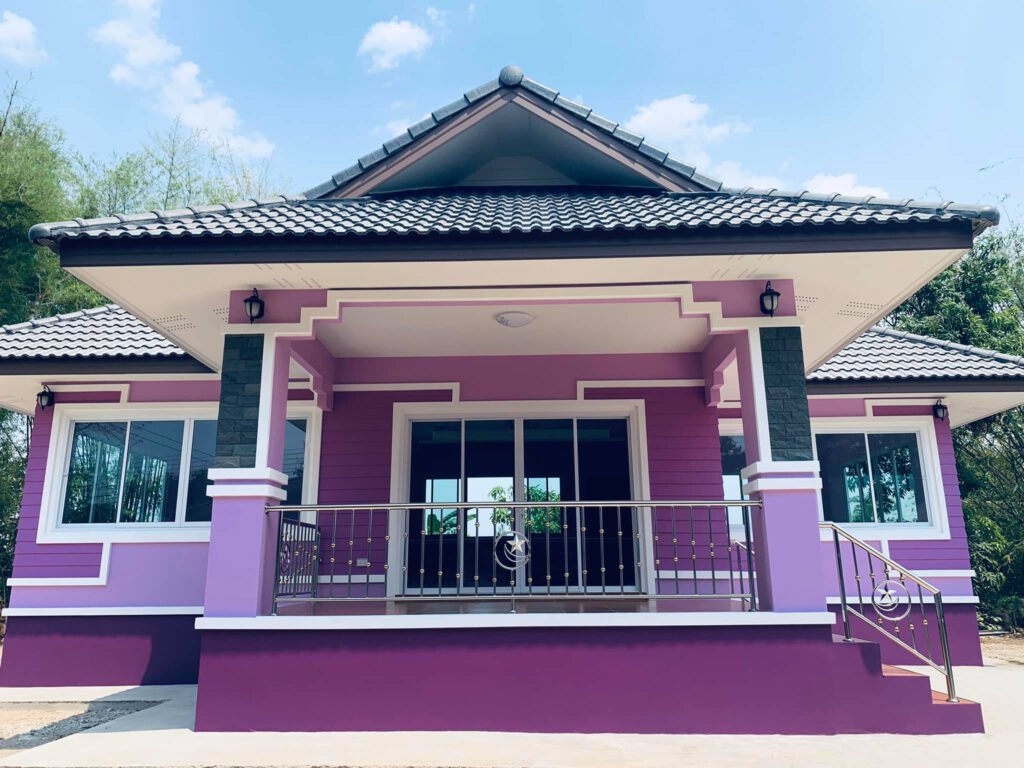 บ้านชั้นเดียว สไตล์ร่วมสมัย โทนสีม่วง สวยลงตัวน่าอยู่มากๆ