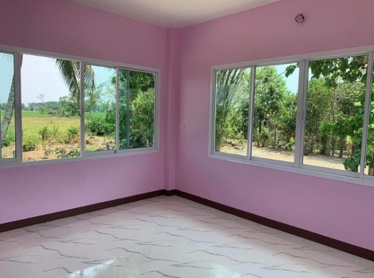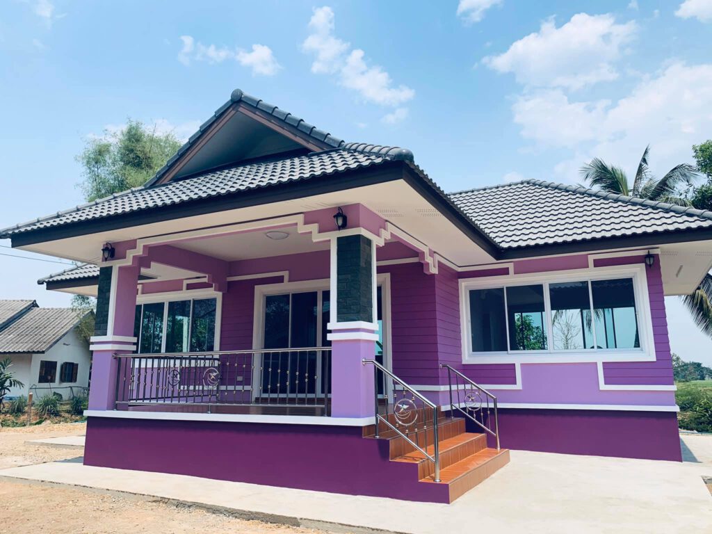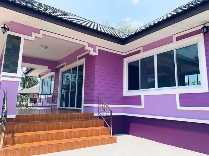 บ้านชั้นเดียว สไตล์ร่วมสมัย โทนสีม่วง ขนาด 2 ห้องนอน 1 ห้องน้ำ สวยลงตัวน่าอยู่มากๆ
