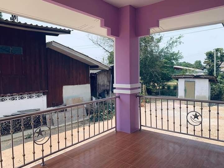 ด้านหลังบ้านมีบันไดสำหรับเข้าออกได้ ทางประตูด้านหลัง บริเวณนี้เชื่อมกับห้องครัวด้านในบ้าน