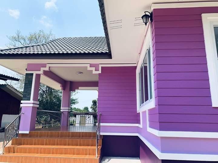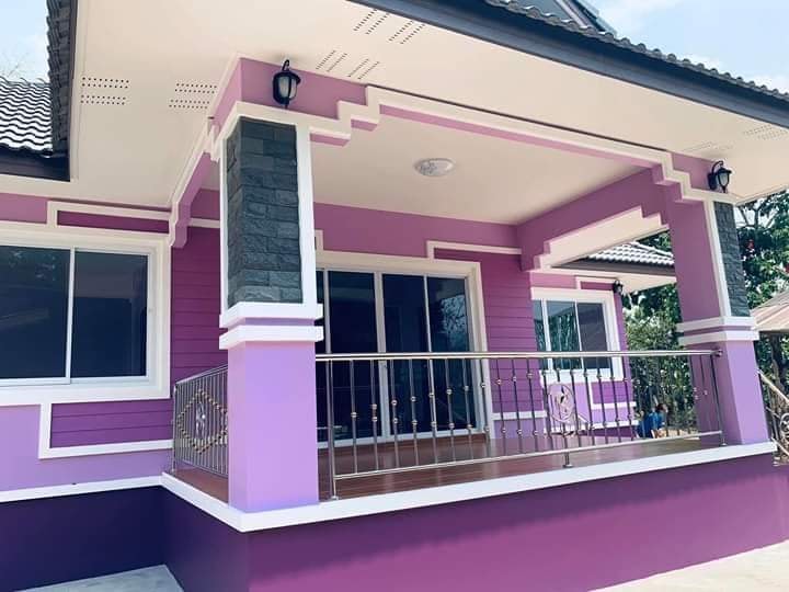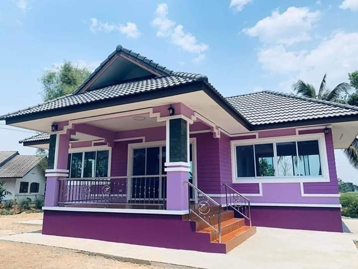 ใครเห็นก็หลงรัก บ้านหลังนี้สวยถูกใจคนรักสีม่วงอย่างแน่นอน วันนี้เรามีบ้านสวยๆ ออกแบบสวยงามน่าอยู่สไตล์ร่วมสมัย ตัวบ้านโทนสีม่วงเข้ม สลับม่วงอ่อน สวยงามลงตัว เหมาะกับครอบครัวขนาดเล็ก ถึงขนาดกลาง ประกอบด้วย 2 ห้องนอน 1 ห้องน้ำ ห้องโถงกว้าง พร้อมระเบียงด้านหน้าบ้านกว้างขวาง เป็นผลงานจาก หจก. สิงห์สยามก่อสร้าง ใช้งบประมาณในการปลูกสร้าง 760,000 บาท