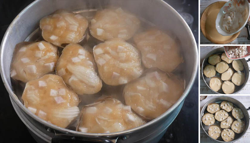 5.นำไปนึ่งด้วยไฟปานกลาง 25-30 นาที หรือจรกว่าจะสุกและพักไว้ให้เย็น