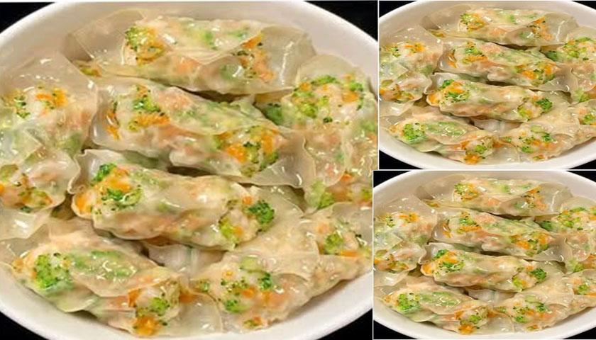เกี๊ยวนึ่งไส้กุ้งผัก