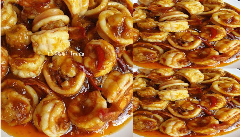 หมึกไข่กุ้งผัดกะปิจร