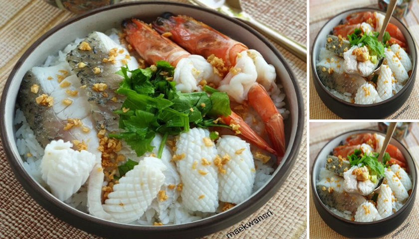 ธีทำ “ข้าวต้มแห้งทะเล” ข้าวนุ่มหอม เครื่องแน่นจัดเต็ม พร้อมสูตรน้ำจิ้มเต้าเจี้ยวรสเด็ด